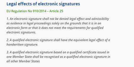 Qualified Electronic Signatures are considered the same as handwritten signatures:
